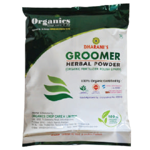 Groomer Herbal Powder is a 100% organic, Ayurvedic-based crop management solution made from select herbal plants. It boosts flowering and fruiting, prevents fruit drop, and improves overall crop quality in size, colour, and taste. It also strengthens the plant’s immune system for healthier growth and longer crop life.